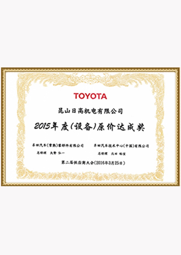 • 2015年度(設(shè)備)原價(jià)達(dá)成獎(jiǎng)