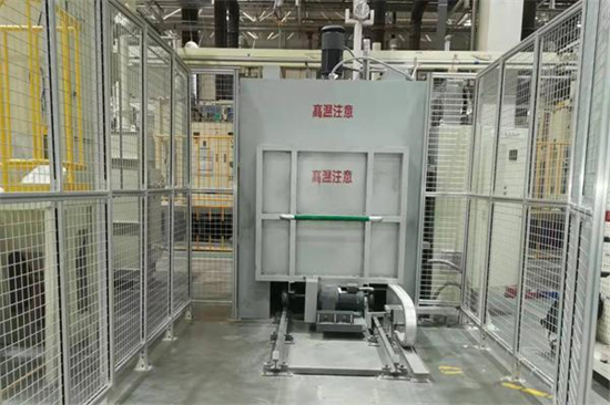 由伺服電機驅(qū)動臺車進出,將模具設置于臺車上,進爐后加熱至指定溫度,完成后自動出爐。